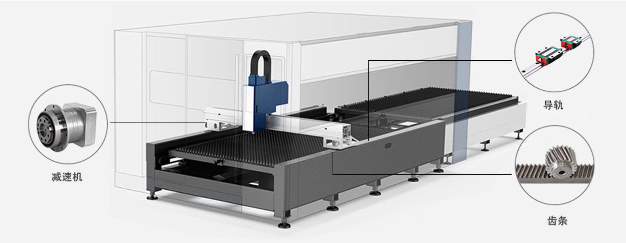齒輪齒條傳動(dòng)系統(tǒng)剛性好、精度更高, 節(jié)約了上下料等待時(shí)間, 相較于傳統(tǒng)的鏈輪鏈條傳動(dòng)方式 ,它的各方面性能都有顯著提高,快速實(shí)現(xiàn)平臺交換。