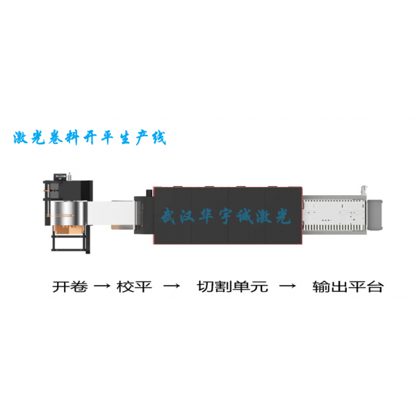 整套采用激光切割技術(shù)的開卷落料生產(chǎn)設(shè)備,由上料臺車、開卷機(jī)、校平機(jī)、緩沖活套、伺服送料機(jī)、激光切割裝置、切割平臺、廢料處理系統(tǒng)、液壓氣動系統(tǒng)及電氣控制系統(tǒng)組成。